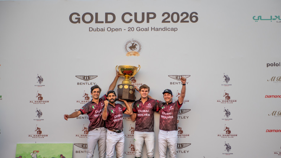 The 2026 Dubai Polo Gold Cup Final delivered an electrifying showdown of world-renowned players as the Dubai Wolves by Thera defeated the reigning champion, UAE Polo Team, 11-8 to claim the coveted trophy. The Teams were Habtoor Al Habtoor, Cesar Crespo, Félix Esain, and Santiago Laborde on the Dubai Wolves by Thera Team; and Her Highness Sheikha Maitha Bint Mohammed Bin Rashid Al Maktoum, Salvador Jauretche, Lucas Monteverde Jr., and Rosendo Torreguitar on the UAE Polo Team. Félix Esain from the Dubai Wolves by Thera was named Most Valuable Player for his standout performance while Only Caravina, also ridden by Esain, earned Best Playing Pony, highlighting the exceptional athletic caliber that defines this tournament.